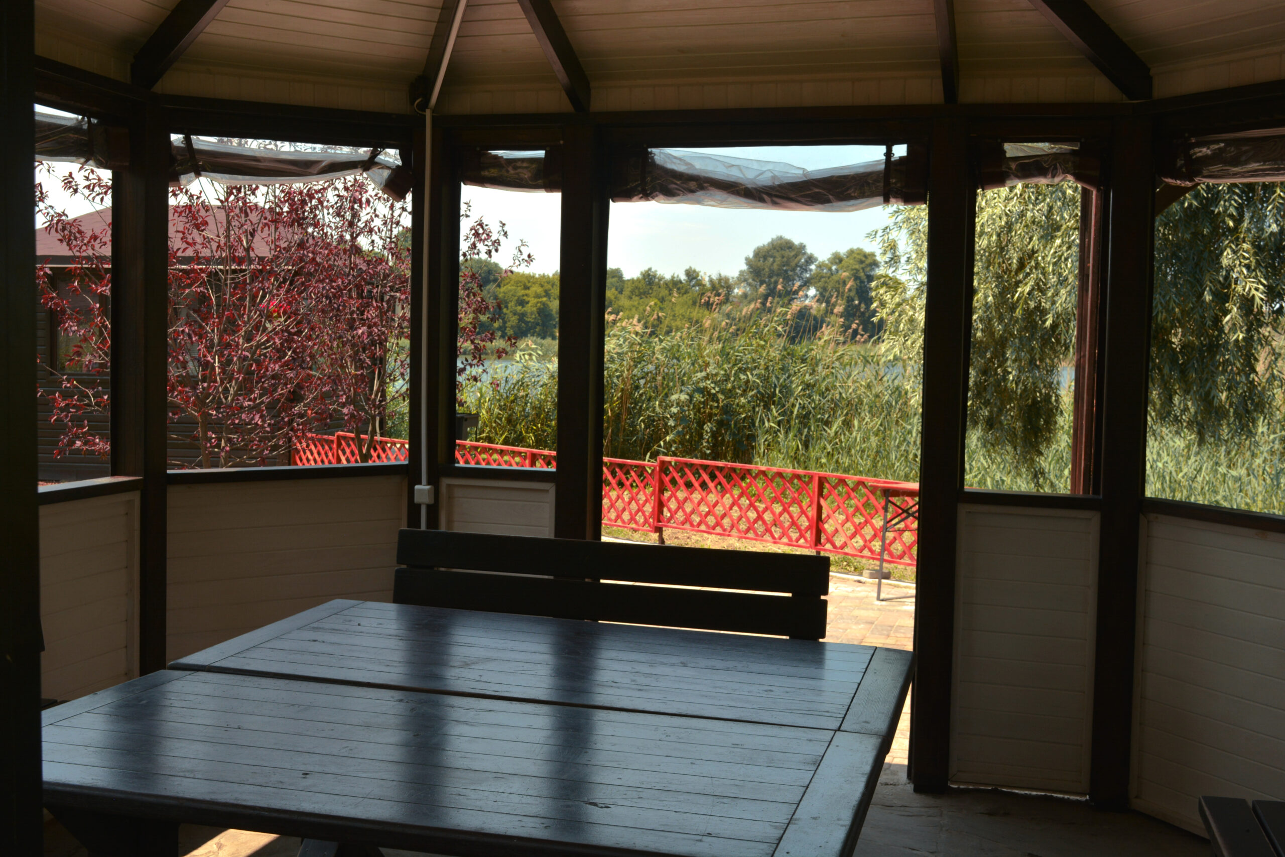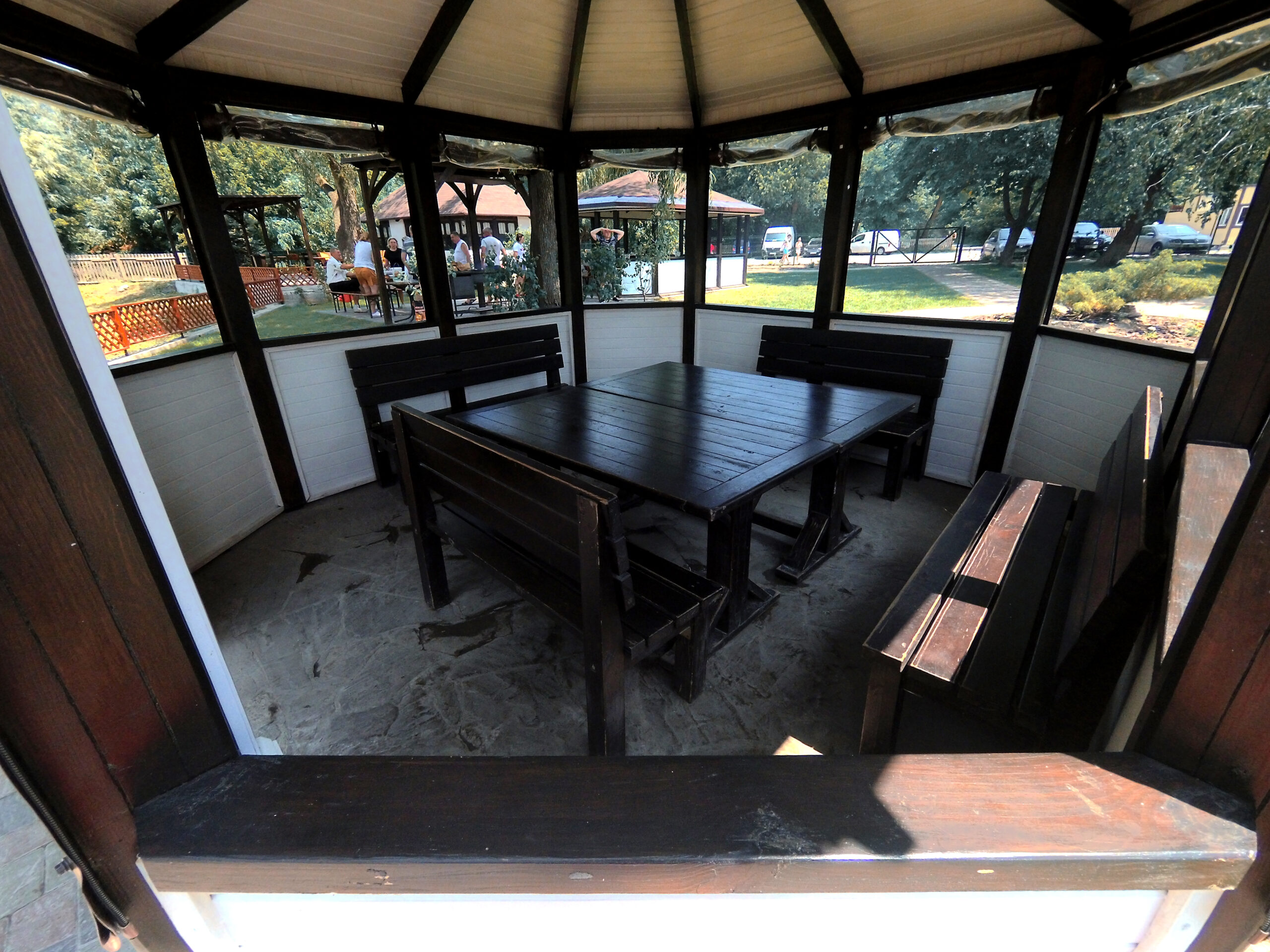 Місткість альтанки – 12 осіб. Наявна мангальна зона.